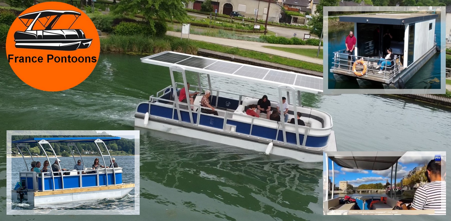 France Pontoons conçoit et fabrique ses propres modèles de bateaux pontons électrosolaires autonomes. Nous nous adaptons également à vos projets. Nous constructions sont 100% aluminium et 100% locales avec un soucis d’économie circulaire: profils neufs issus de refonte d’aluminium recyclé, batteries lithium issues de seconde vie de l’industrie automobile. Nous proposons par ailleurs des kits de production photovoltaïque + stockage + restitution AC complets pour tous types de projets:
